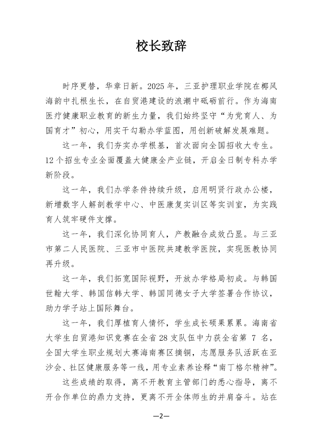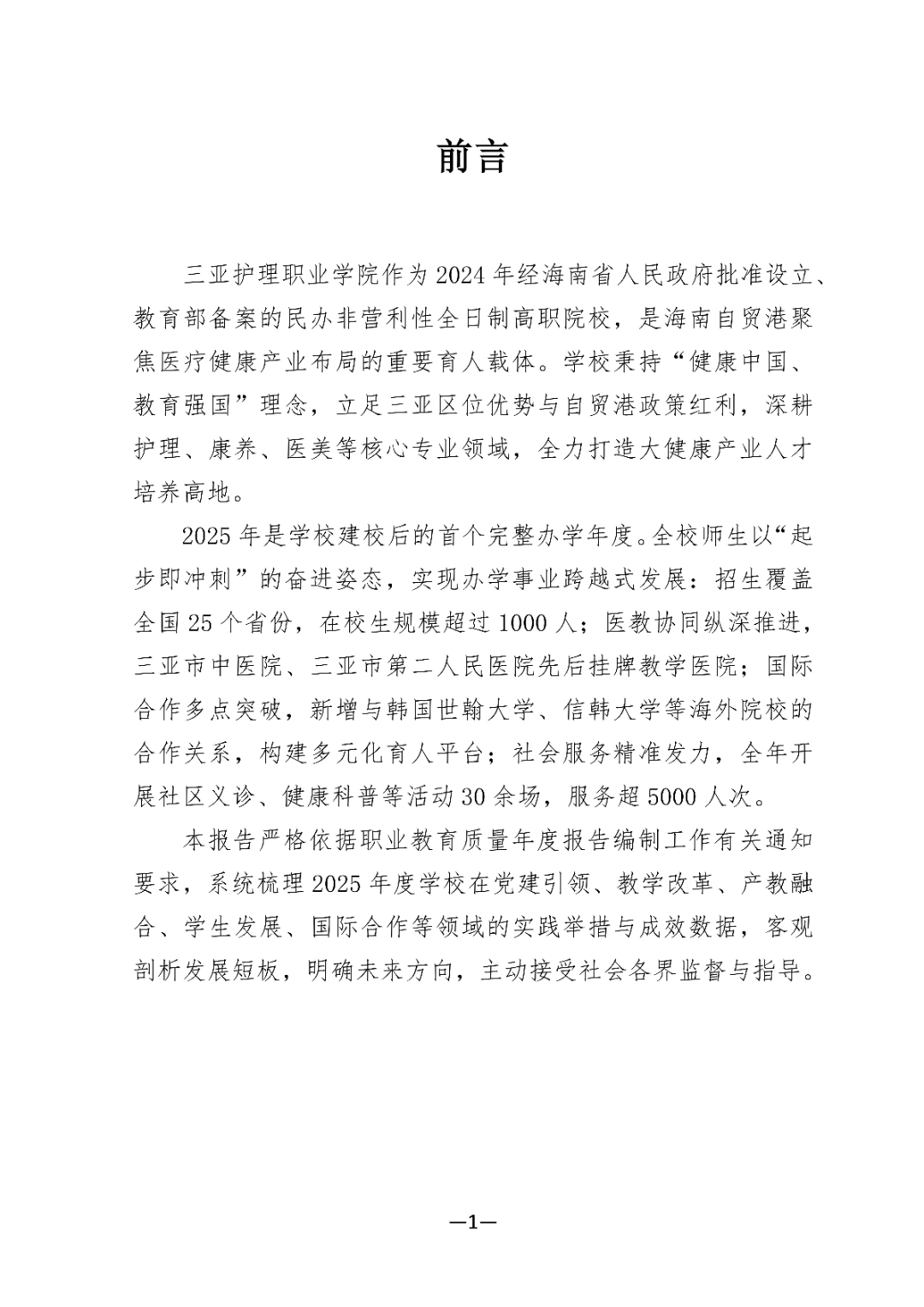 三亚护理职业学院高等职业教育质量报告(2025年度)
